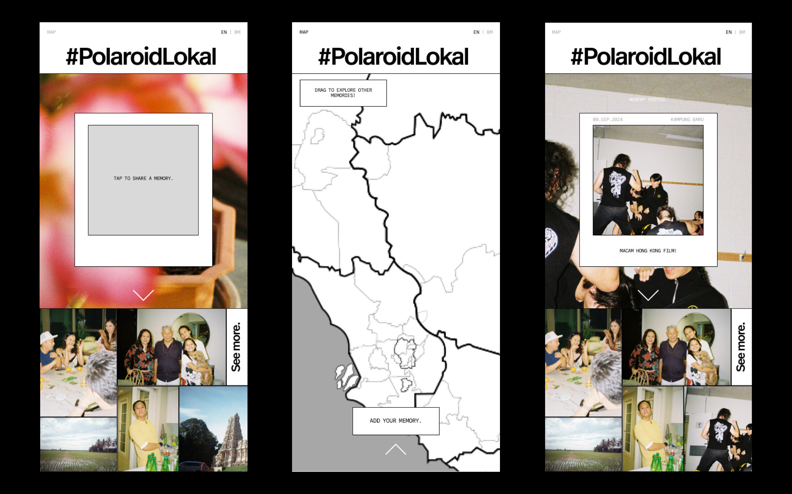 a university project to design a socially responsive campaign for polaroid that uses digital and analogue photography to celebrate the culture, tradition, and everyday life of malaysians.the campaign includes informative collaborations with local artists, cultural spaces alongside an interactive component of real-time digital memory sharing.